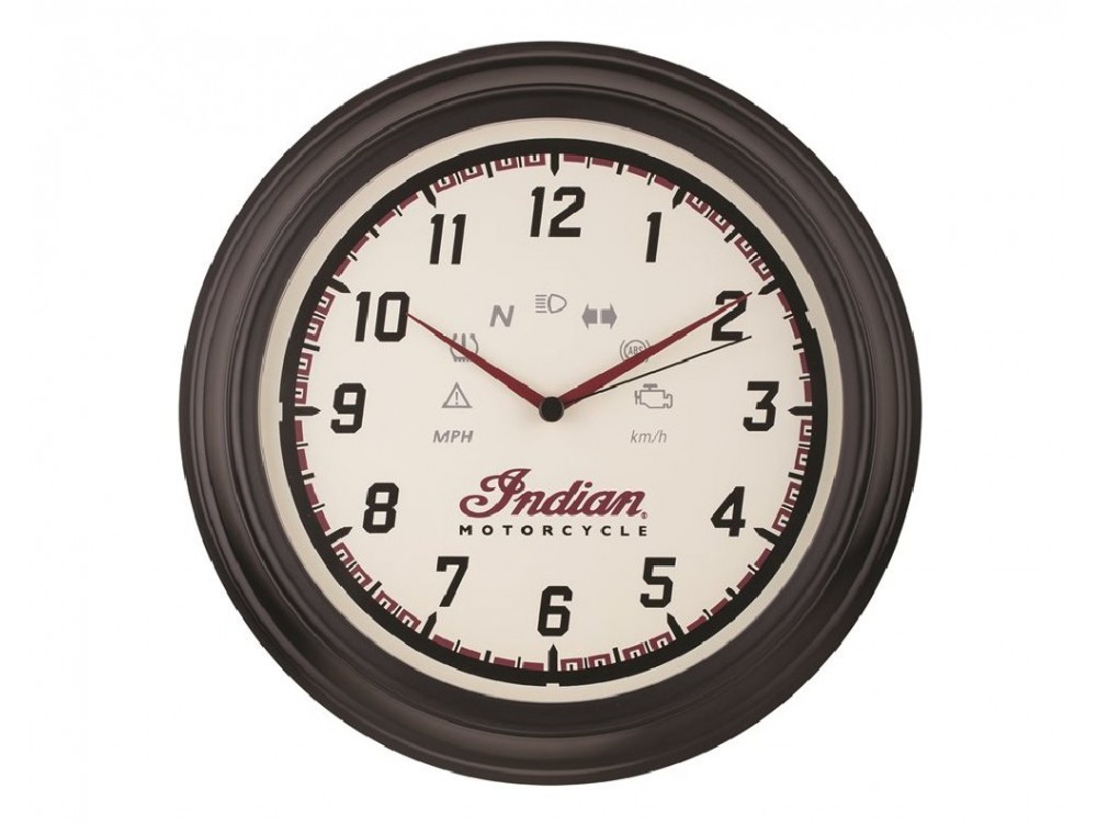 Design inspiration derived from the speedometer of Indian Motorcycles®. This matte black framed wall clock features speedometer graphics which aims to deliver the most precise and accurate time.