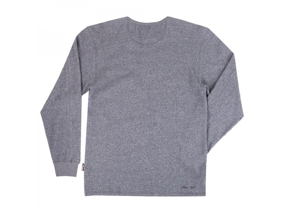 A long sleeve grey marl tee made in a textured waffle knit, the honeycomb design of the fabric allows air to flow easily so that the fabric dries quickly.