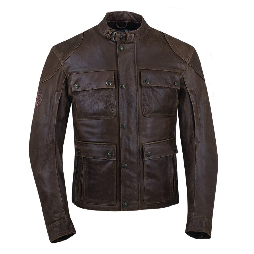 A Vintage look soft brown riding jacket with no trend patch pockets, with shoulder panels and buckle collar. This jacket feature vets for cooling and a removable liner for warmer days.