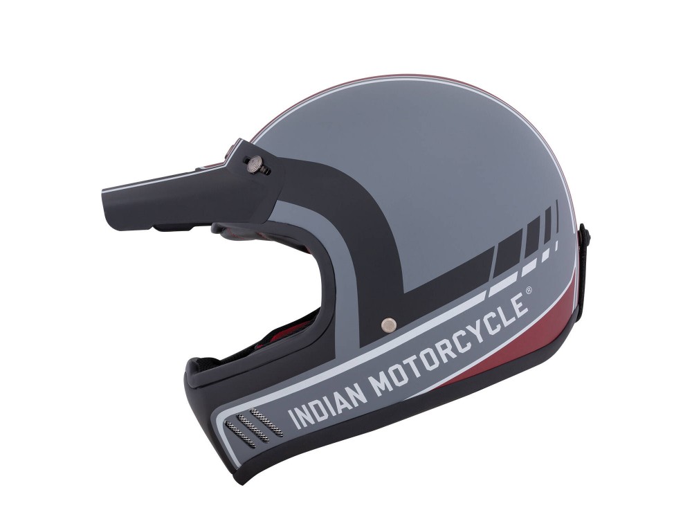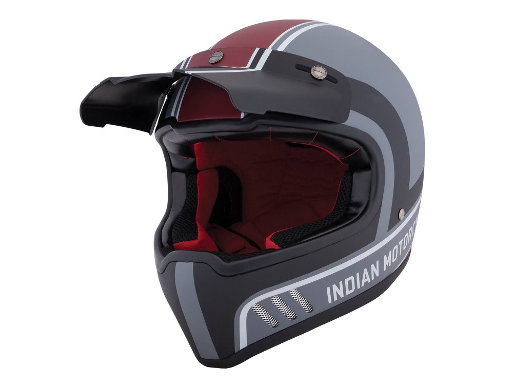 - Motocross-style helmet with removable sunpeak