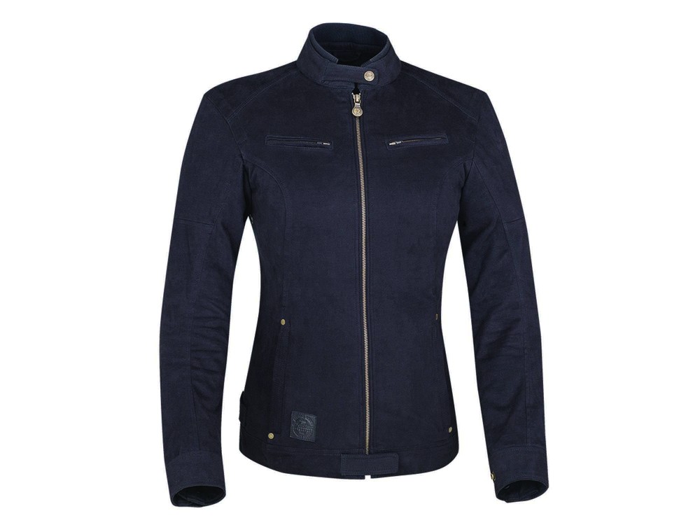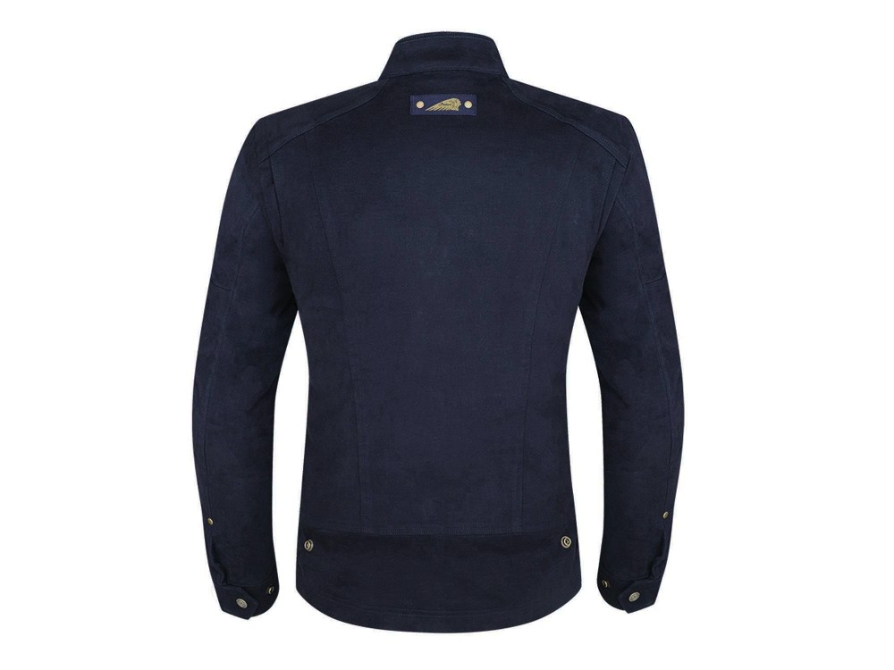 Description: This is a stretch cotton mix jacket with a rib knit collar, for comfort. This casual style looks good with subtle branding.