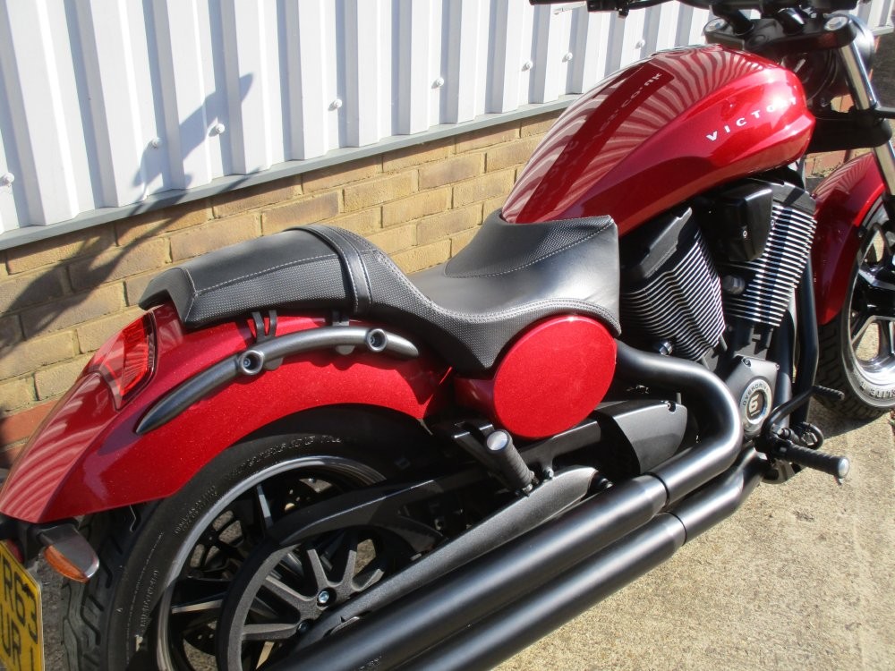 This Victory Judge is a late 2013 registered bike and only covered 16920 miles from new. Finished in the Red Metallic paintwork and also host some extra's : Victory stage one exhausts, Datatool alarm and an easy clutch for lighter operation. Very striking bike in the Metallic Red and comes alive in the sun. Not many nice Victory bikes left as owners are hanging onto them. Must be seen to appreciate its stunning looks. We have other Victory machine's in stock just not advertised yet.