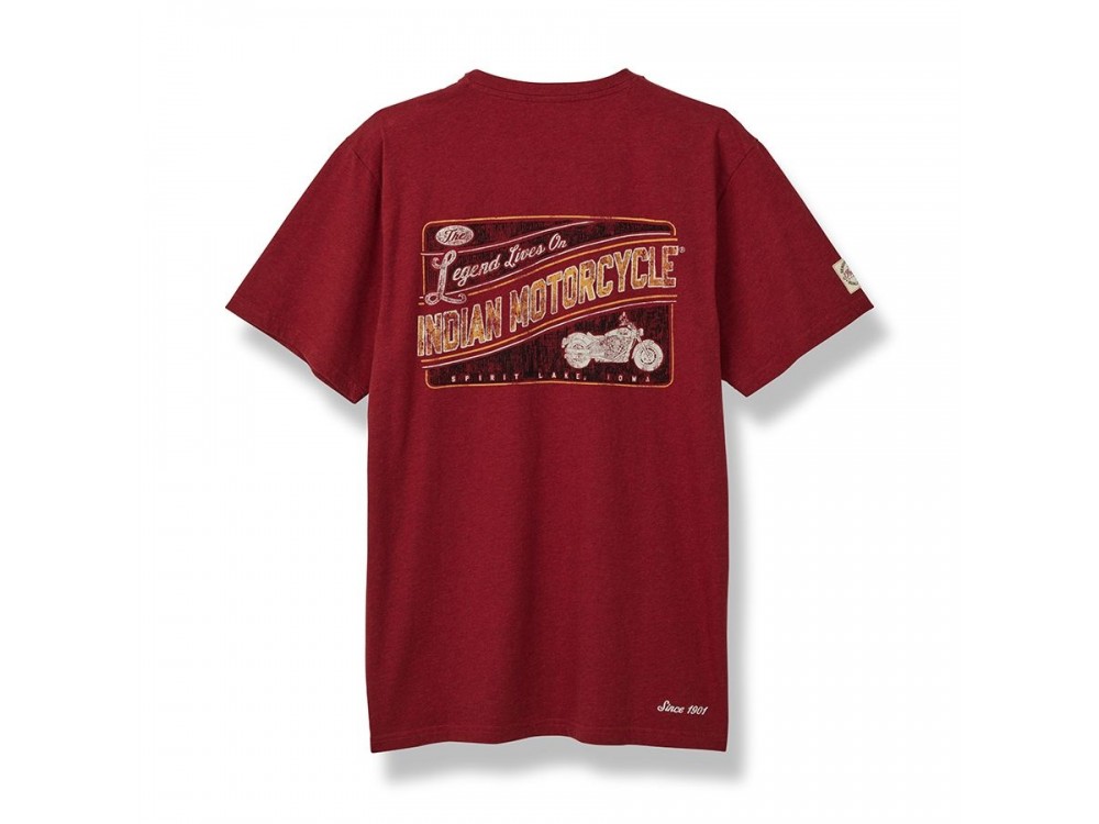 Large distressed Indian Motorcycle block-type logo and graphic on the back