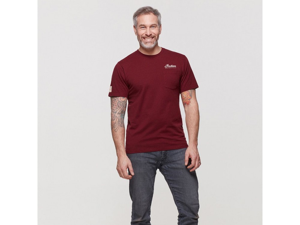 Large distressed graphic with script Indian Motorcycle logo on the back