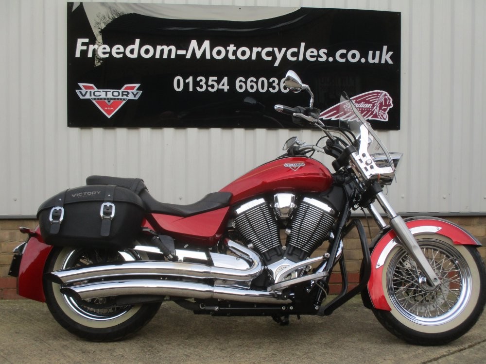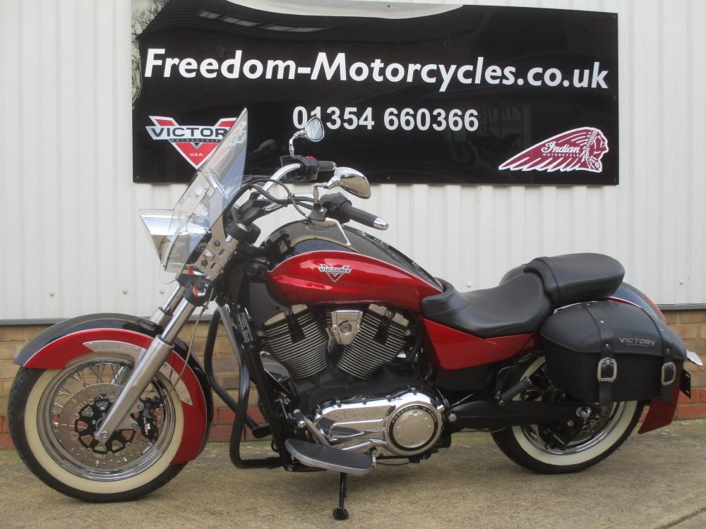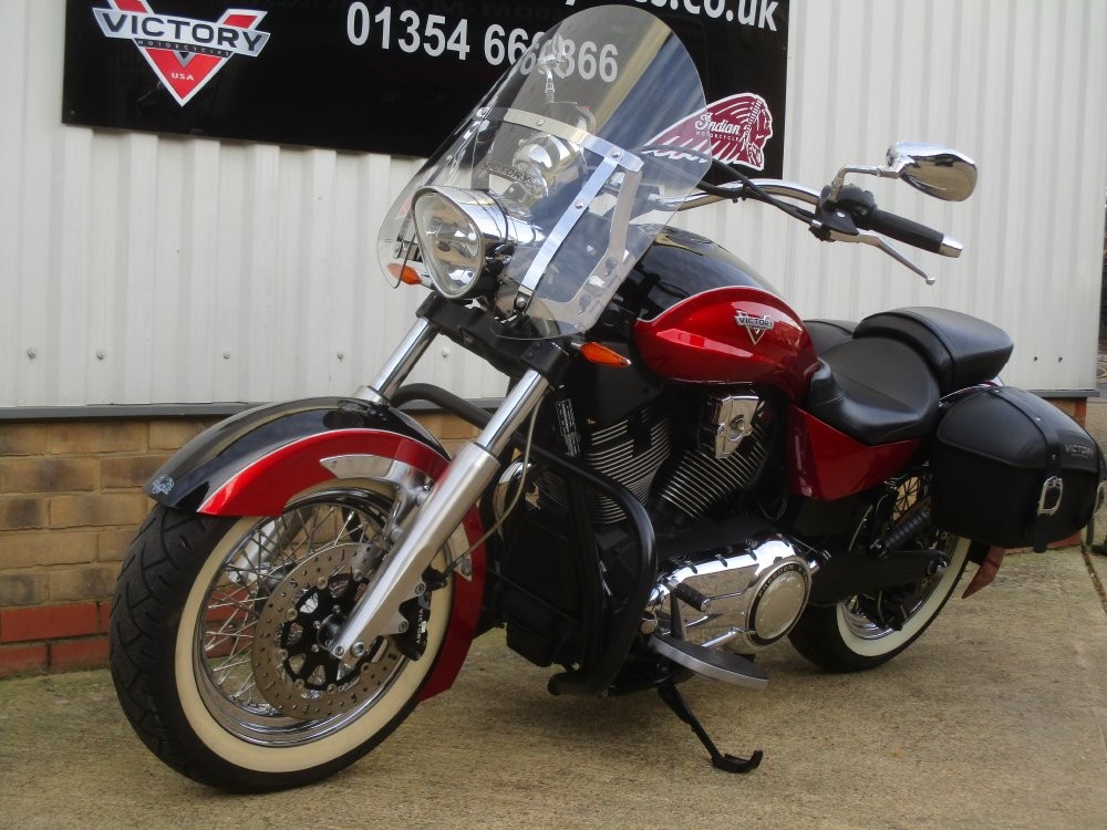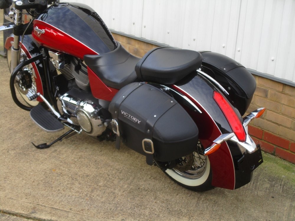 This Victory Boardwalkl has only covered 10338 miles, The machine is an official UK bike having 2 owners from new and comes complete with all original paperwork and keys. Victory was powered by a 1731cc fuel injected V-twin and power transmitted to the rear wheel via the six speed overdrive gearbox. To compliment the stunning looks there is a host of extra's fitted : Victory stage one exhaust, pillion seat and pegs, quick detach Victory panniers, screen, crash bars, floorboards. The bike is a head turner with its classic American style with the two tone paintwork and its shinny chrome spoke wheels. If you are looking for a Victory for every day riding or touring then this is the one for you.
