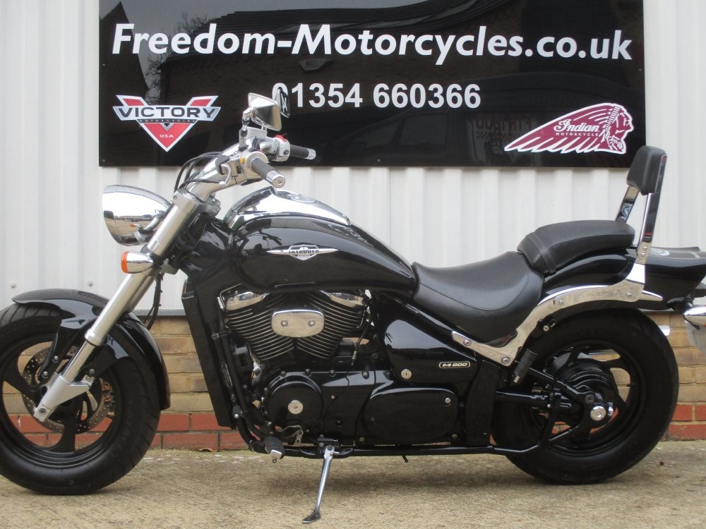This Suzuki VZ800 Intruder has just come in part exchanged and has only covered 15652 miles from new. The bike has had two former keepers from new and comes complete with all original handbooks and keys. Finished in Gloss Black with the addition of a rear sissy bar the machine is in very good condition and must be viewed. The VZ range is powered by a 800cc vtwin liquid cooled engine and is shaft driven so no need for chain lubrication.