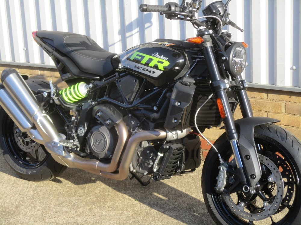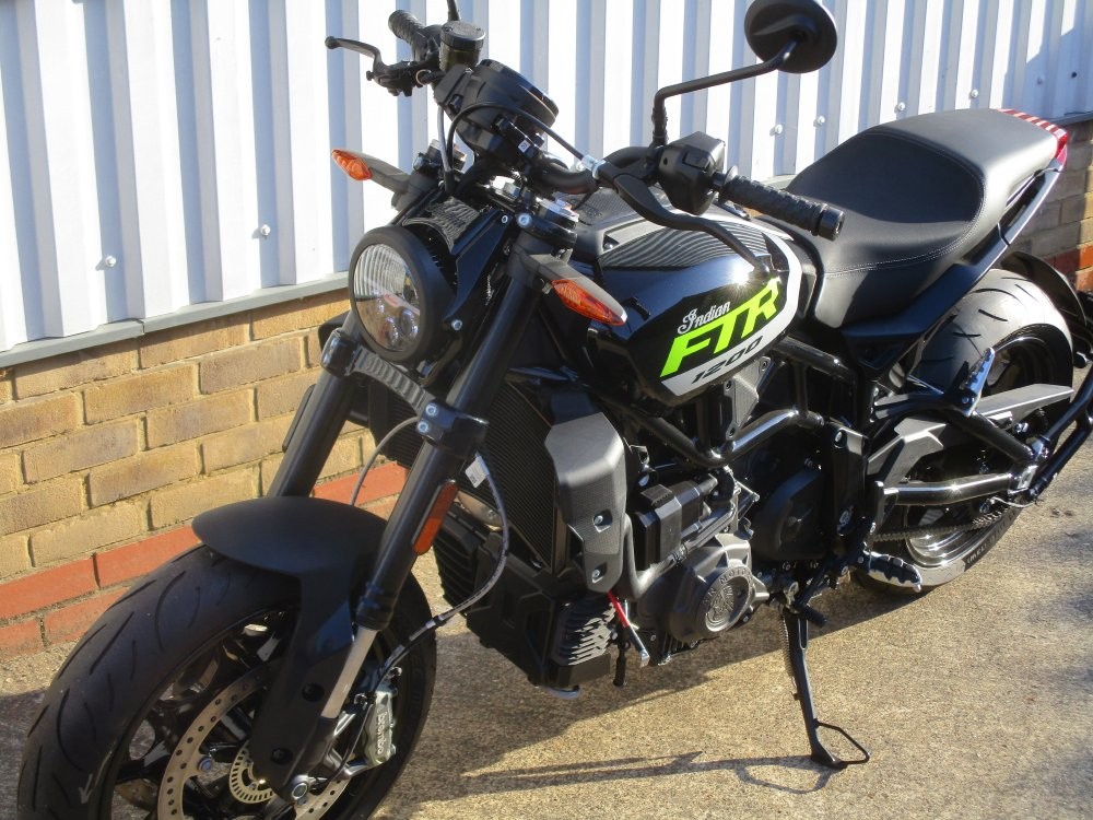 DISCOUNTED OFFER £2000 SAVING OF LIST PRICE, NOW ONLY £9995.00 BRAND NEW UNREGISTERED The New FTR1200 for 2023 has arrived in our store. This New FTR MY23 finished in Gloss Black with Lime Graphics . FTR is powered by a proven 1203 V-twin fuel injected engine, providing 120BHP. Power is provided through a smooth six speed gearbox and delivered to the tarmac via the 17" sports wheels. FTR is a hoot to ride and makes every journey an adventure, especially for those who like a 'Spirited Ride'