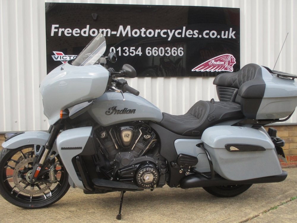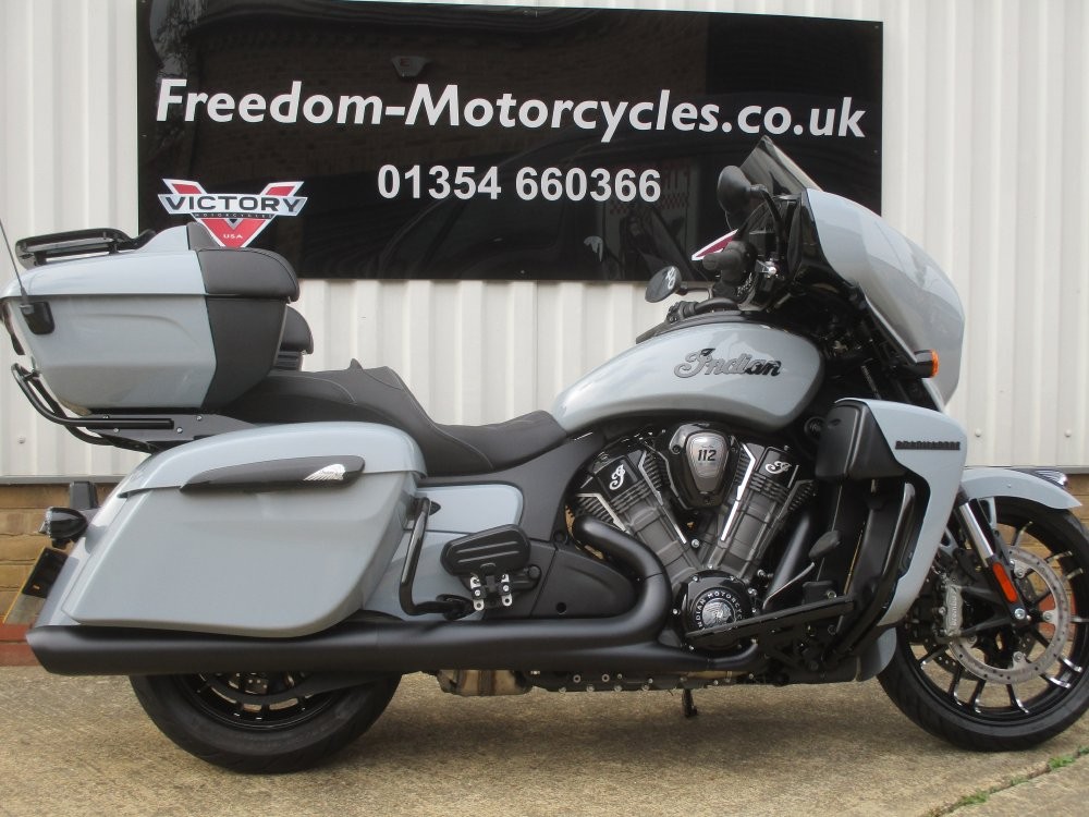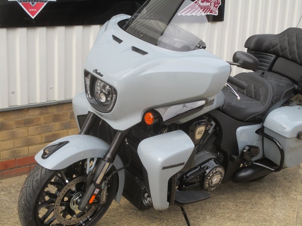 2025 Indian Roadmaster Dark Horse Power Plus with 112Ci package has arrived in stock and is the New big tourer on the block. It's proven 112cui Power Plus engine which delivers 181NM of torque which makes every tour an effortless ride. What makes Roadmaster so special is the all the goodies attached to this premium touring bike, here are some extra's to wet your taste buds: Sat Nav, Heated seats, Abs, Cruise control, Radio, central locking, LED Lighting, heated grips, Tpms, Hill hold, Electric screen, Electronic adjustable suspension and a whole lot more refinements.