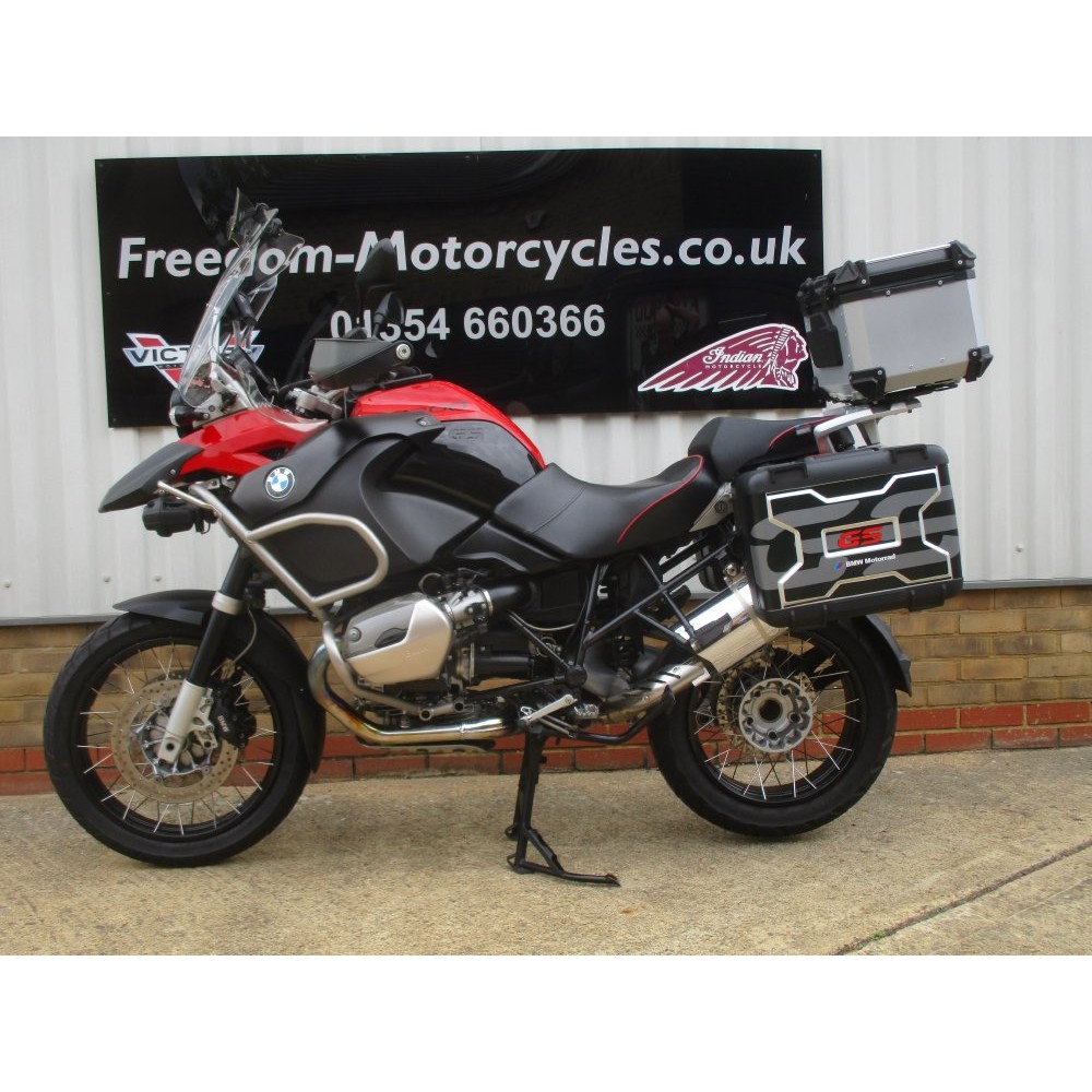 This 2008 BMW R1200 GSA MU Adventure has just come in to stock and was previously sold and serviced by our workshops. This is a true Adventure with the larger petrol tank and very slightly higher seat height. The bike is in stunning condition for it's year and comes with Three luggage boxes, taller screen with deflector, seagants seats , spot lamps, ESA, heated grips, crash bar's , bark busters, Sat Nav, fender extender, Petrol tank luggage adaptor, cylinder protector's, over grips and Private Plate E ** GSA . Must be seen to appreciate just how clean this machine really is, a true credit to the last owner.