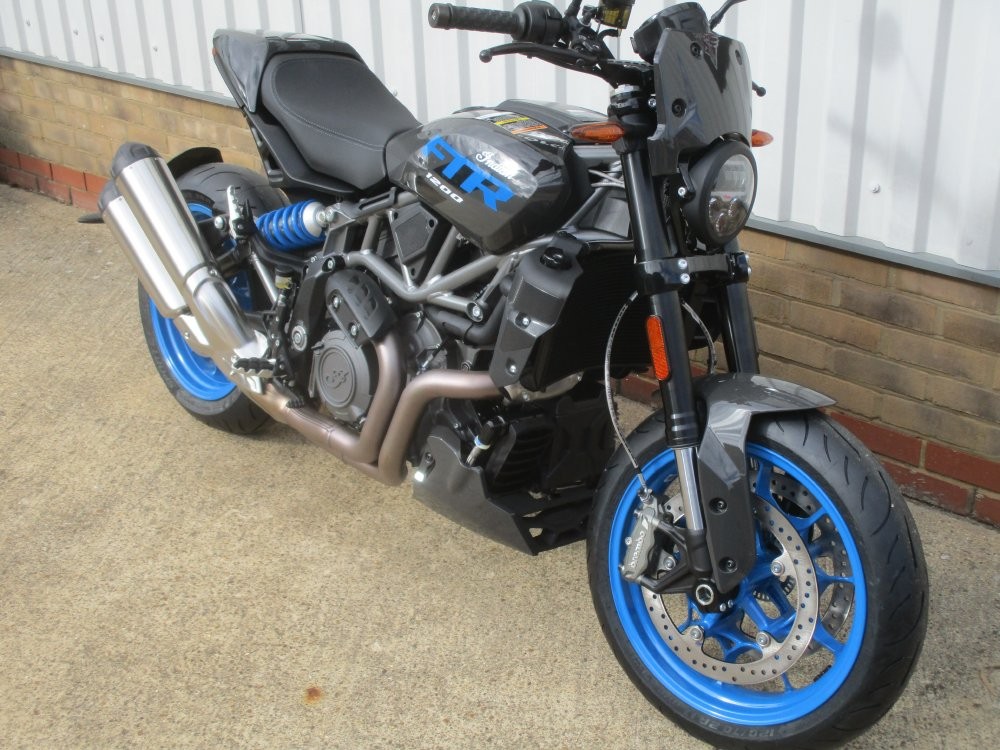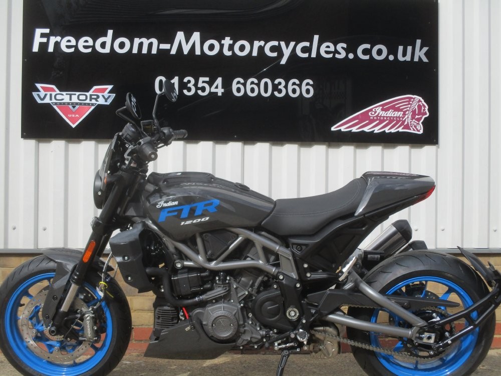 LIMITED OFFER £2500 OF LIST PRICE. LIST PRICE £14995.00 OUR PRICE £12495 The New FTR1200 for 2024 has arrived in our store. This New FTR SPORT MY24 finished in Grey with Blue wheels FTR is powered by a proven 1203 V-twin fuel injected engine, providing 120BHP. Power is provided through a smooth six speed gearbox and delivered to the tarmac via the 17" sports wheels. FTR is a hoot to ride and makes every journey an adventure, especially for those who like a 'Spirited Ride'. The 4" TFT screen offers three rider modes, and has a built in Sat Nav. 2023 models now come with rear cowl and small belly pans.