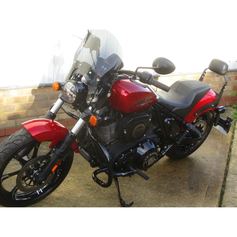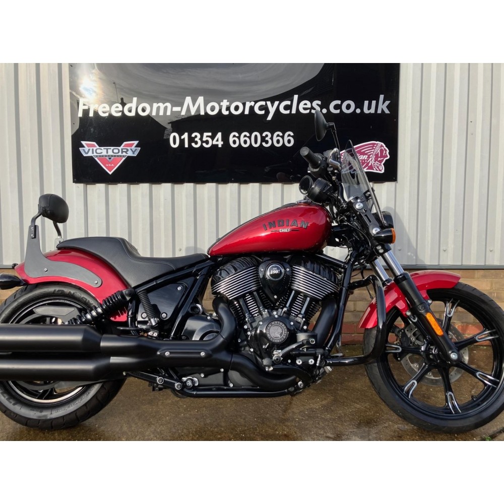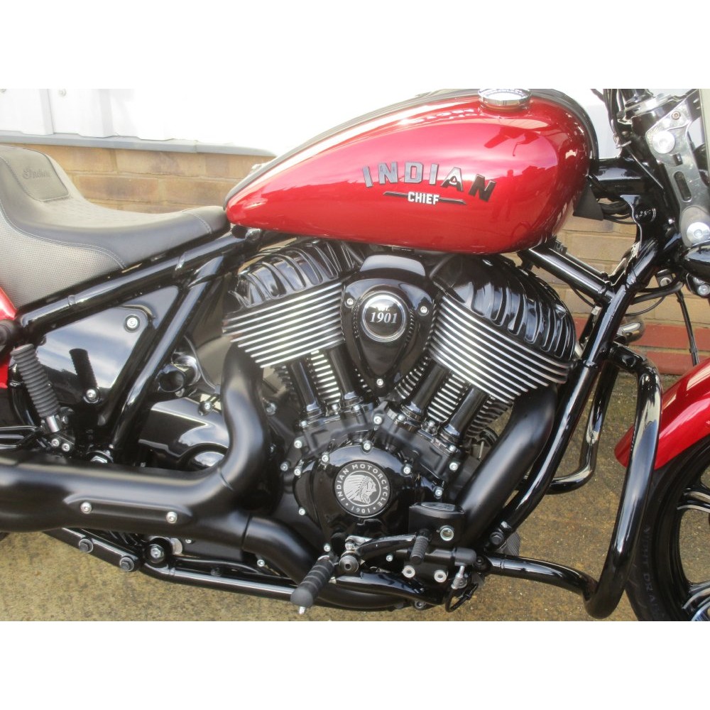 This 2025 Indian Chief Dark Horse finished in the Sunset Red metallic has just come into stock , it's had one owner from new and only covered 1449 miles. The Chief Dark horse is the middle weight cruiser with rider modes, cruise control.Chief is powered by the proven 1890cc Thunder Stroke engine pumping out 160nm or torque coupled to a six speed manual gearbox, when you twist the throttle open in sport mode she fly's. . There is a 4" digital speedo which has lost of features including built in sat-nav. This blke finished in the Sunset Red Metallic with the blacked out engine and exhaust is a real head tuner. Extra's include, dual seat, rear pegs, crash bars, screen, back rest.