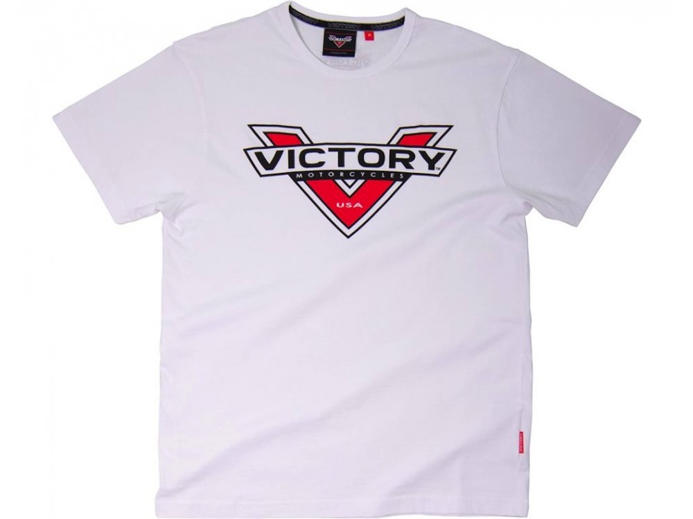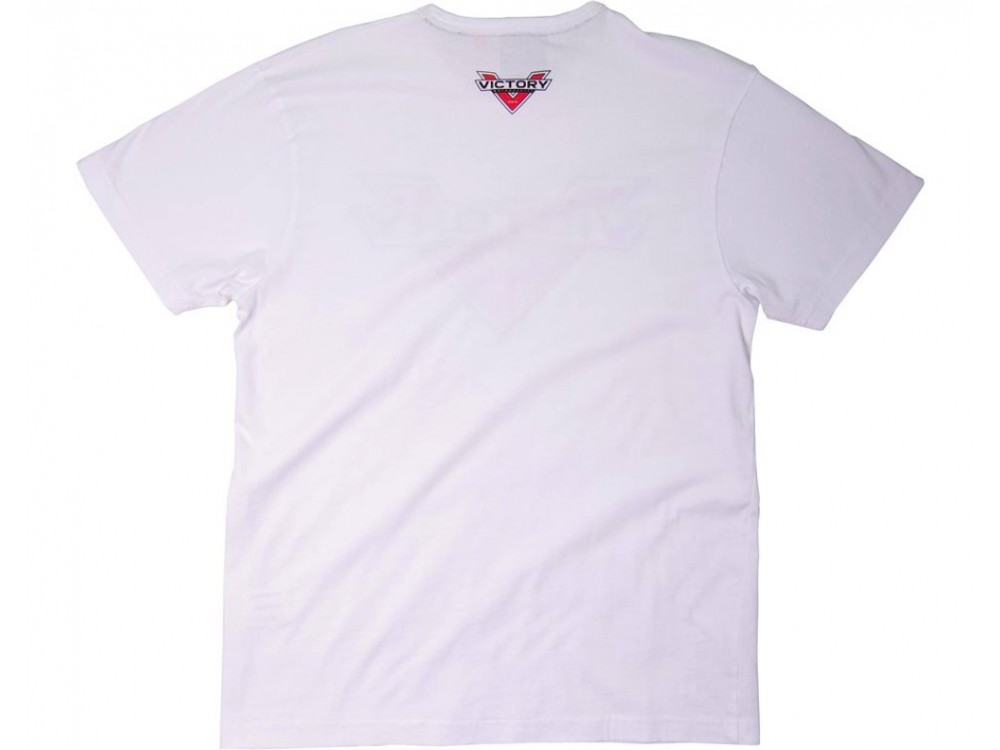 This White Logo Colour Badge T-Shirt is an absolute must for every Victory Motorcycle® rider. It’s a cool, comfortable all-cotton white T-shirt that has the Victory® badge on the front in multiple colours. Wear it alone, under a hoodie or jacket, in every season. It’s a must-have T-shirt.
